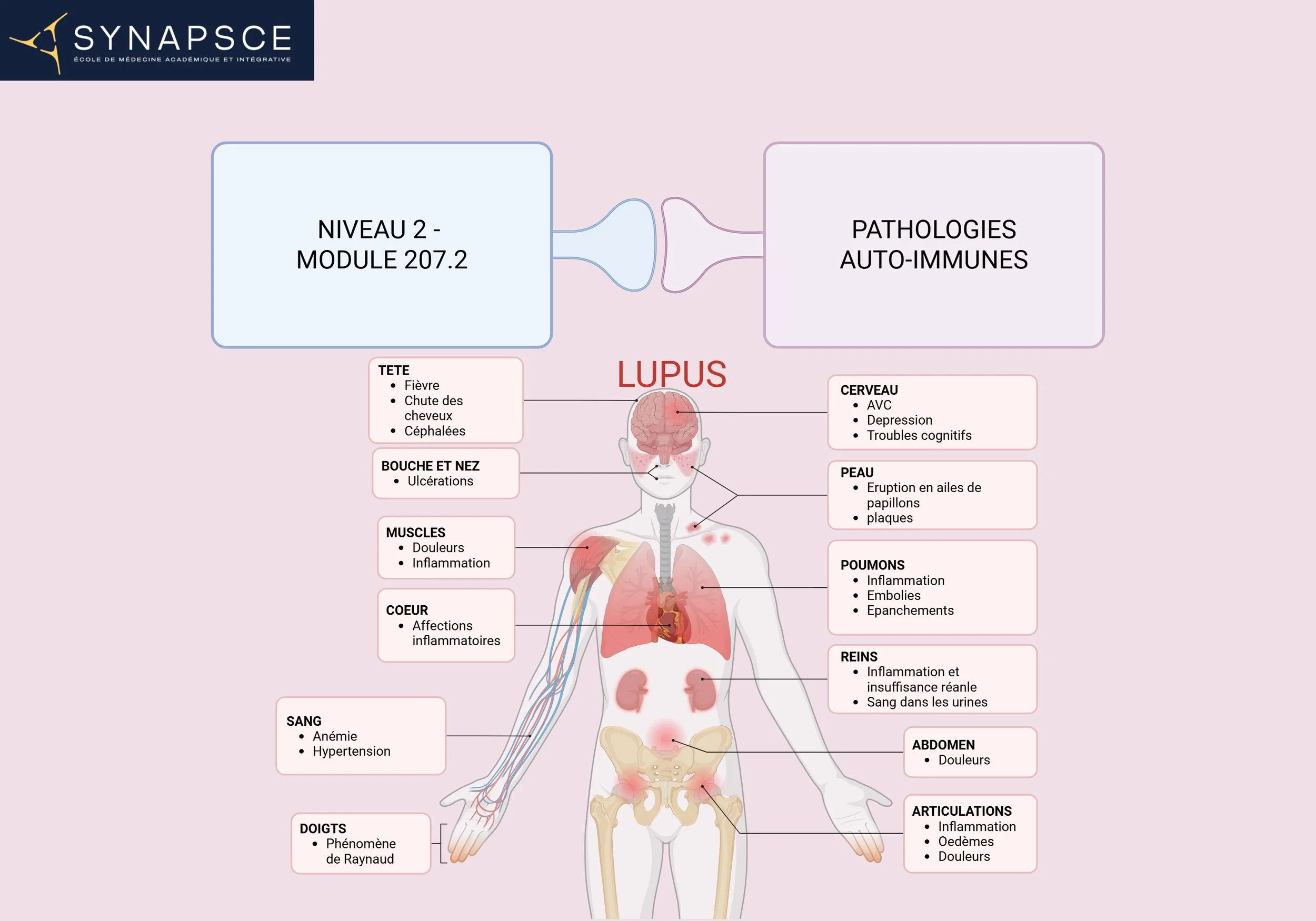Ce cours de niveau 2 propose une approche clinique et transversale des pathologies auto-immunes, centrée sur le raisonnement plutôt que sur l’accumulation de diagnostics. Il vise à comprendre comment un système immunitaire normalement protecteur peut se dérégler, s’éteindre ou s’attaquer à l’organisme lui-même.
