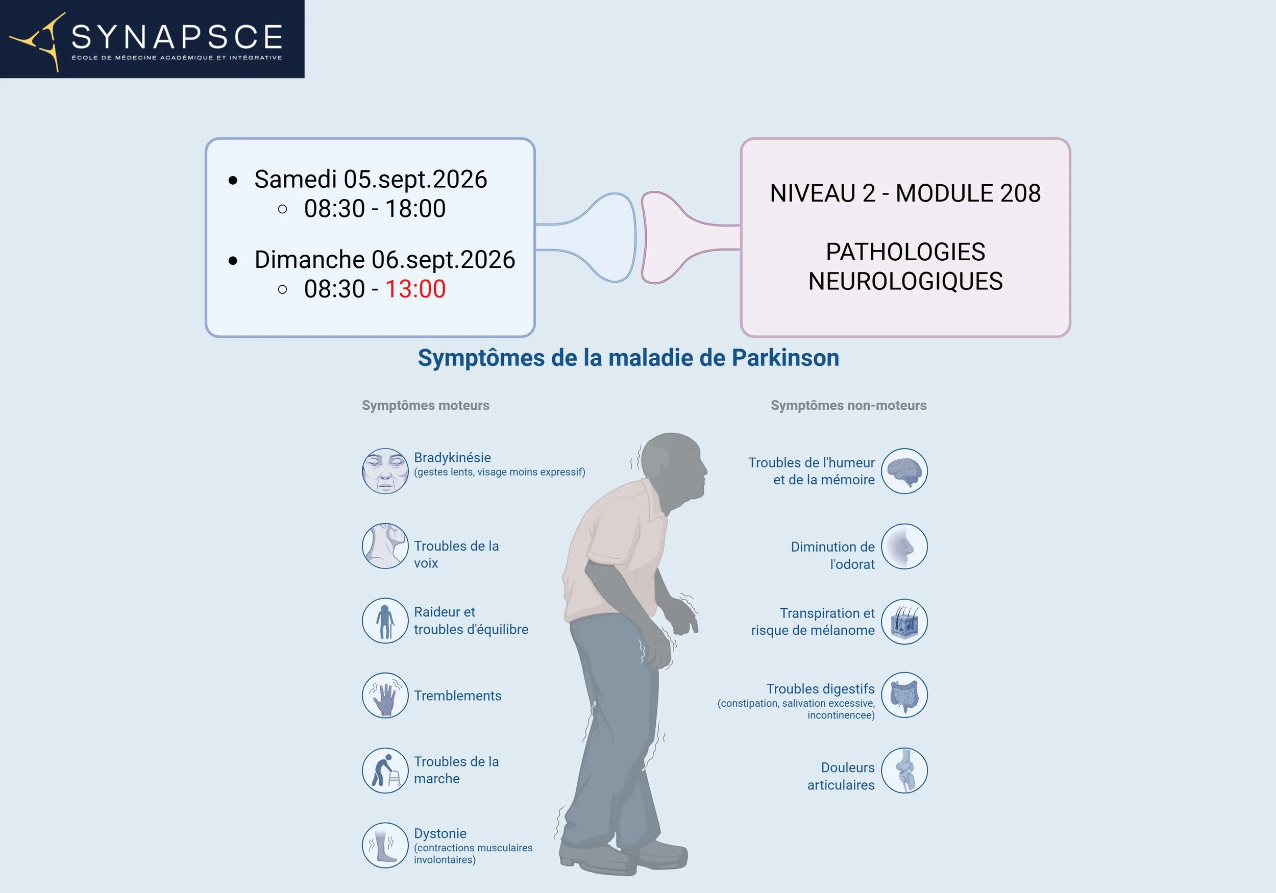 Une attention particulière est portée aux maladies neurodégénératives : leur installation progressive, leurs différences cliniques, leur évolution et leur impact sur le patient et l’entourage. Les atteintes vasculaires, inflammatoires et infectieuses sont également abordées pour savoir reconnaître les situations aiguës comme les trajectoires chroniques.
